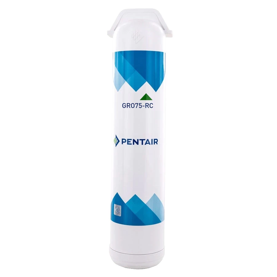 The Pentair GRO75-RC features an industry leading Thin Layer Composite (TLC) membrane. The flow rate for this membrane is 50 gallons per day (GPD), and is based on nominal performance. Most standard membranes have a 3:1 ratio which means for every 3 gallons of waste water that goes down the drain, you get 1 gallon of RO water.That ratio is only a 25% recovery of good water. What separates this membrane from the competition is the GRO75-RC features 50% recovery which is a 1:1 ratio!That means for every 1 gallon of waste water down the drain you get 1 gallon of RO water. No other membrane in the industry can make that claim! This cartridge membrane is a replacement membrane for the Freshpoint GRO-475 and GRO-575 RO Systems.