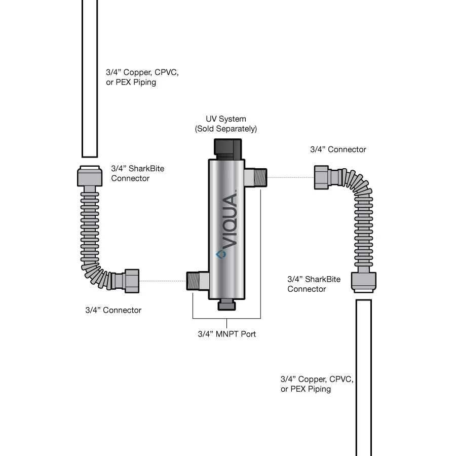 This ultraviolet sterilizer installation kit for male ports with 3/4″ plumbing is for installing our home UV systems.